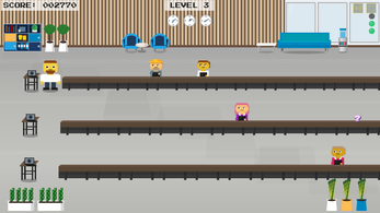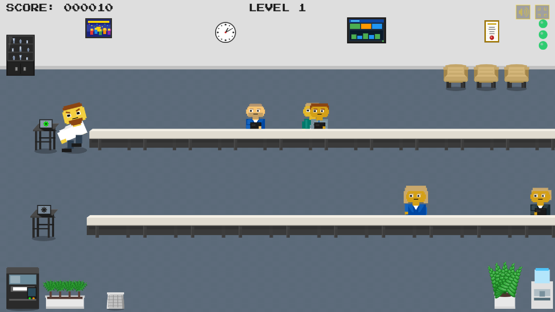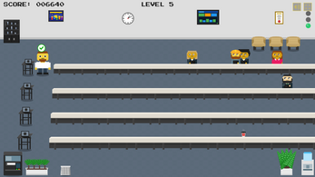 Backlog Buster is inspired by Tapper, the 1980s arcade classic. The setting has shifted from a bar to an open-plan office, and the drinks have become tech solutions, but the gameplay will feel familiar if you played the original.